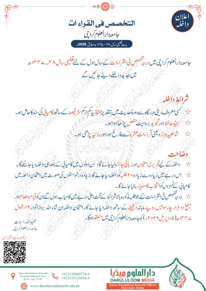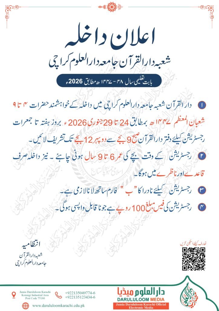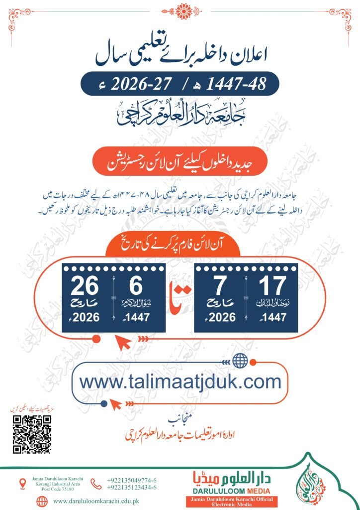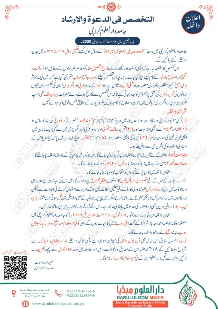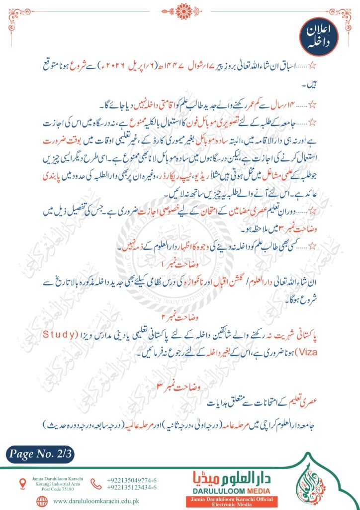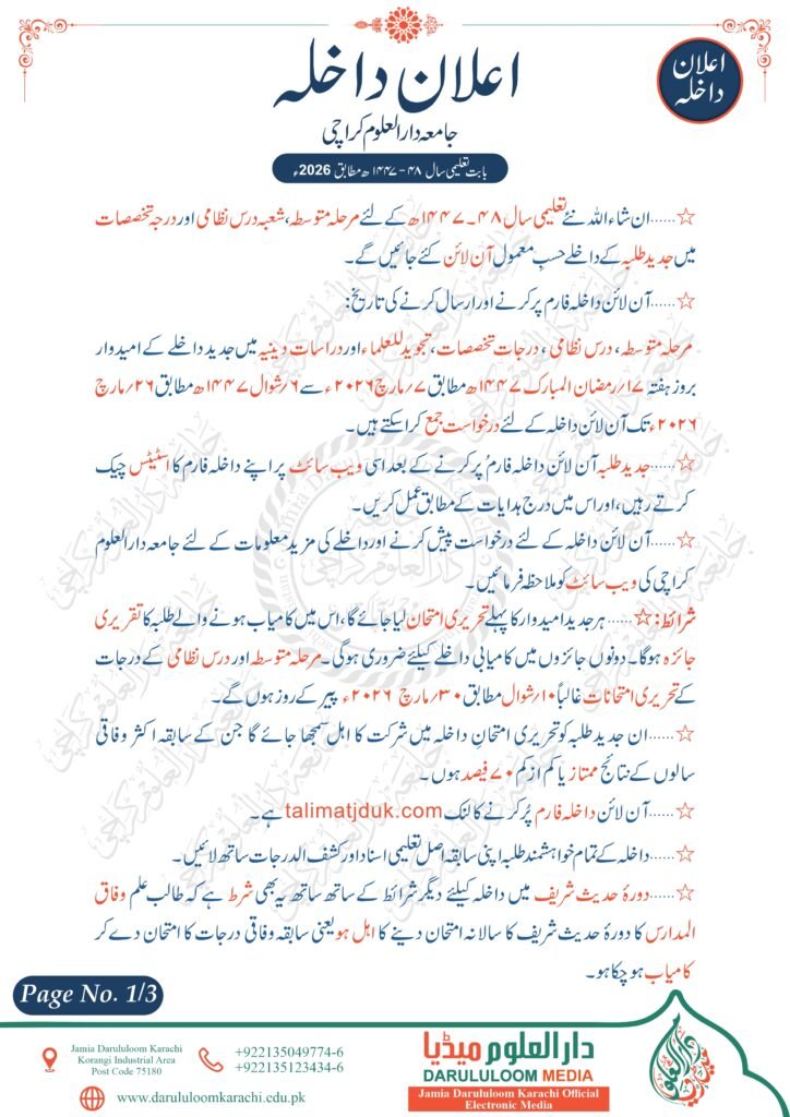 اعلان داخلہ برائے تعلیمی سال 48-1447ھ